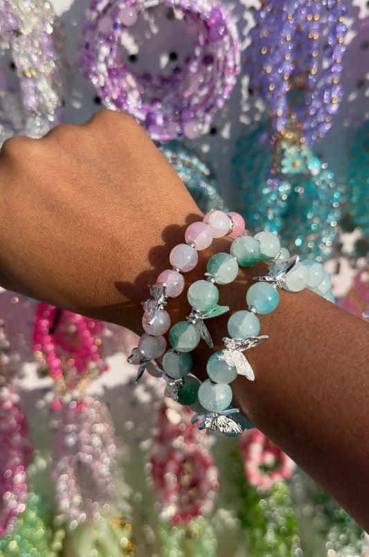 Butterfly Green Lucky Charm Beaded Bracelet