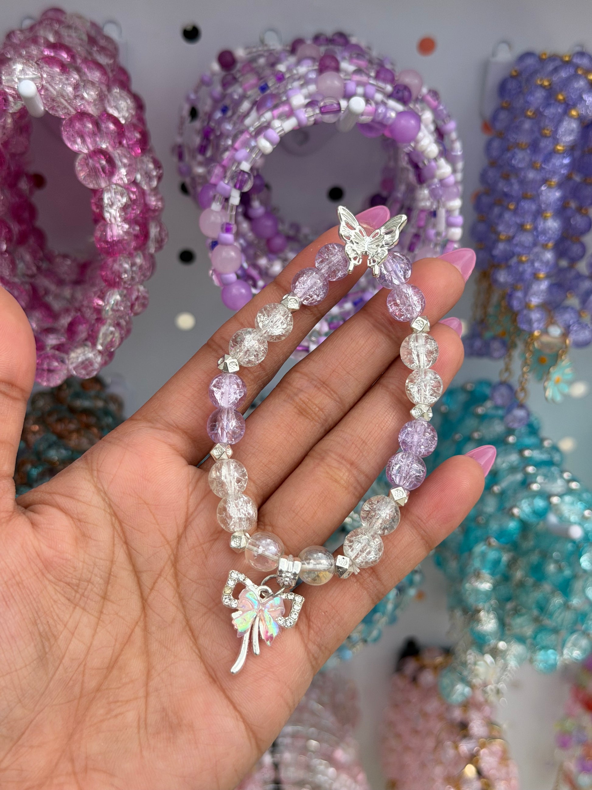 Lilac Butterfly & Bow Beaded Bracelets